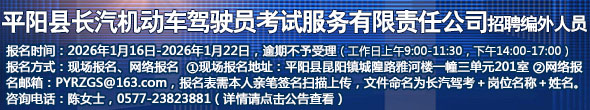 平阳县长汽机动车驾驶员考试服务有限责任公司公开招聘